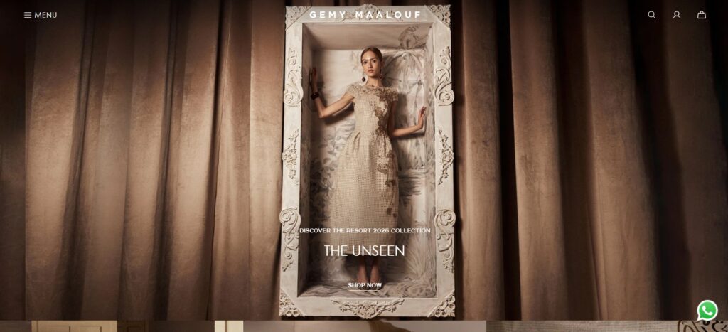 Through her Shopify store, Gemy Maalouf makes her evening wear, kaftans, and couture-inspired pieces accessible worldwide with seamless browsing and refined online presentation.